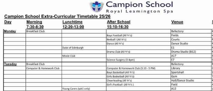 See our Extra-Curricular Timetable below