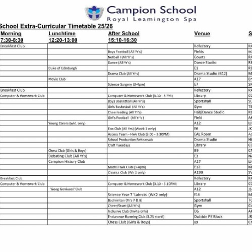 See our Extra-Curricular Timetable below