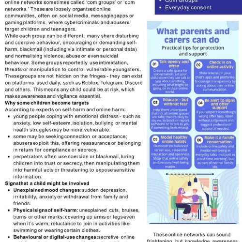 Read our most recent Safeguarding Newsletter about online 'Com' groups and everyday consent